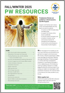 Use this catalog to find the many resources and promotional and gift items to support and enhance your PW ministry! Whether preparing for a Bible study (see page 3); receiving an offering (see page 6); leading a PW group (pages 2 and 4); planning a congregation, presbytery or synod gathering (pages 2, 5–6, and 8); or celebrating your PW ministry by wearing or gifting a logo pin or tote bag (pages 8 and 9), Spanish Bible studies (downloadable, page 13), the resources listed in this resource are made available to you, for you.