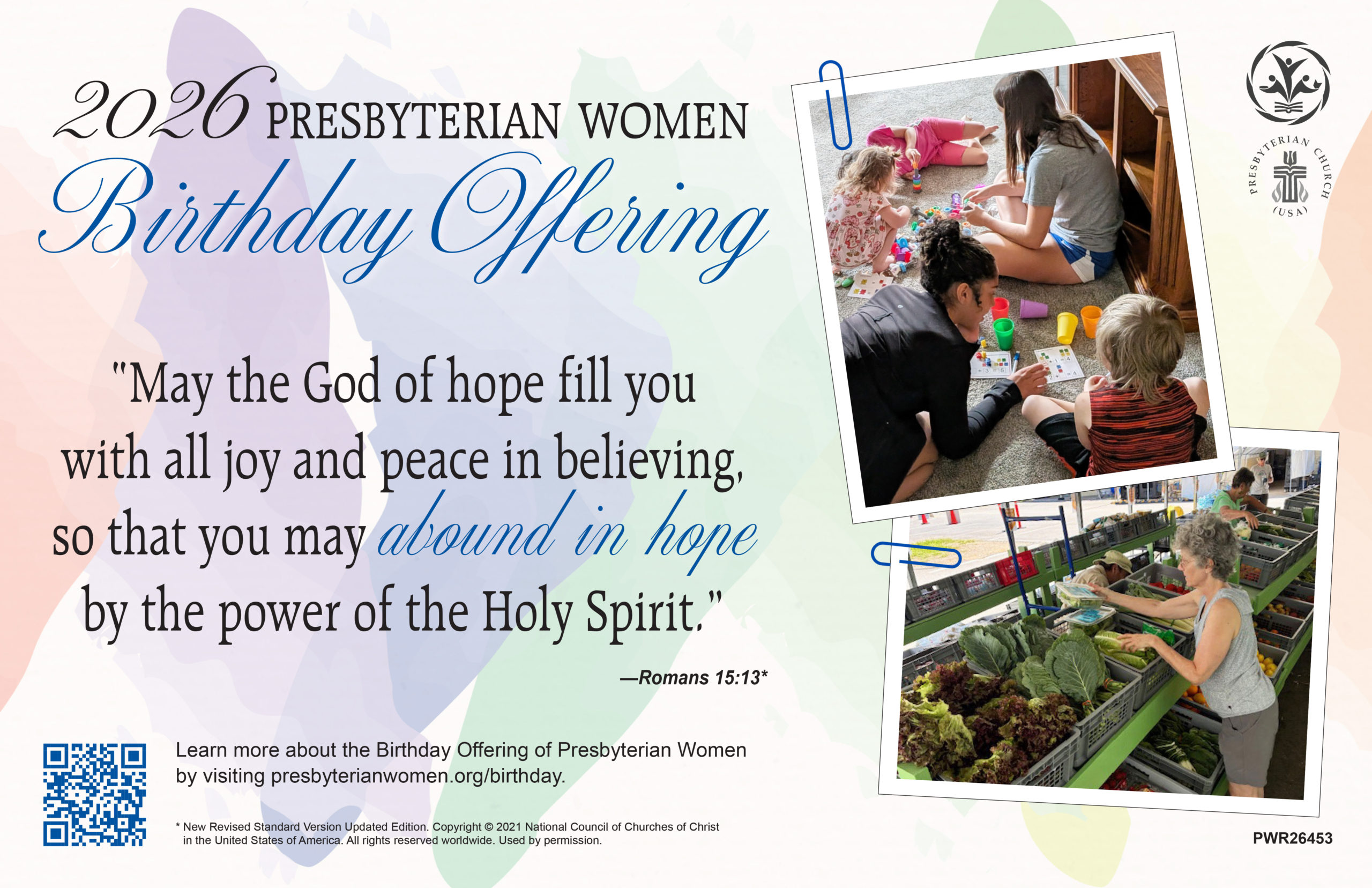 Use the poster/placemat to promote the 2026 Birthday Offering—on a bulletin board or table!
